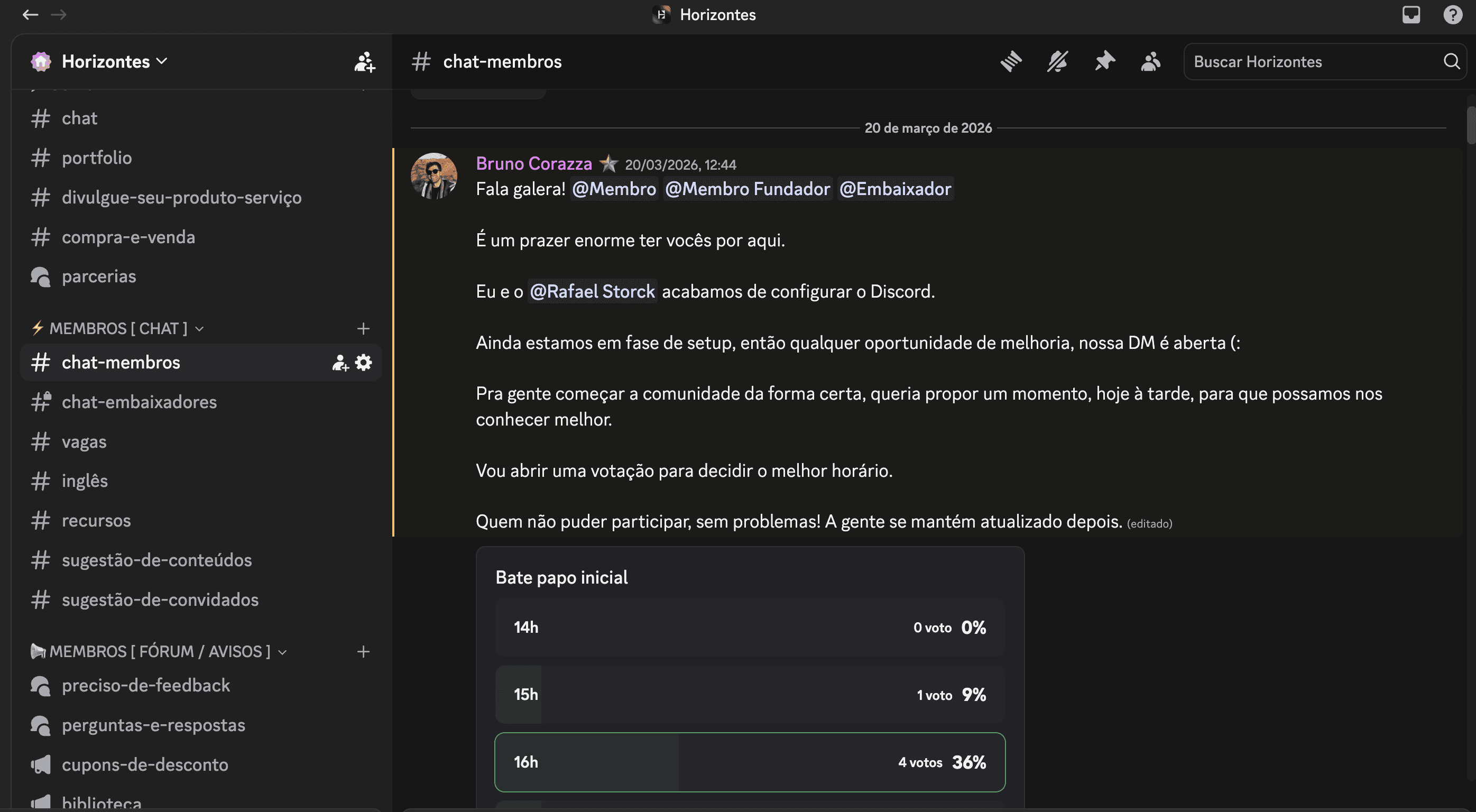 Todo conteúdo, toda conversa, toda oportunidade acontece no nosso Discord. Sem o cargo de membro, tu não acessa nada disso.
